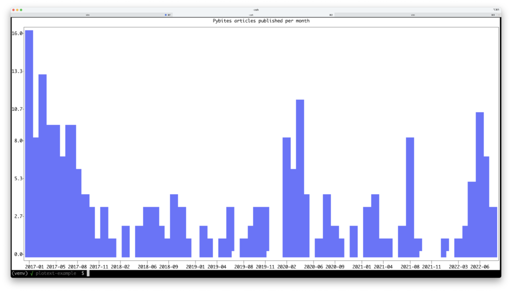 In this blog post a quick script to plot the frequency of our blog articles in the terminal. It’s good to see that we’re getting back on track 🙂